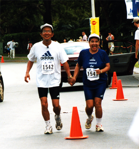 レース中の苦しい道のりの中で痛みに負けそうになりながらも、「ここまで一緒に来たんだから、この先も一緒に歩いていこうよ」、そのような気持ちで夫婦の関係を見直すことが出来たこと。多くの人によって支えられて生きていることを実感出来たこと。そして、乳ガンという病気にはなったけれど病人にはならないぞと決意し、このマラソンレースに参加し完走できたことは一生忘れられない思い出になりました。